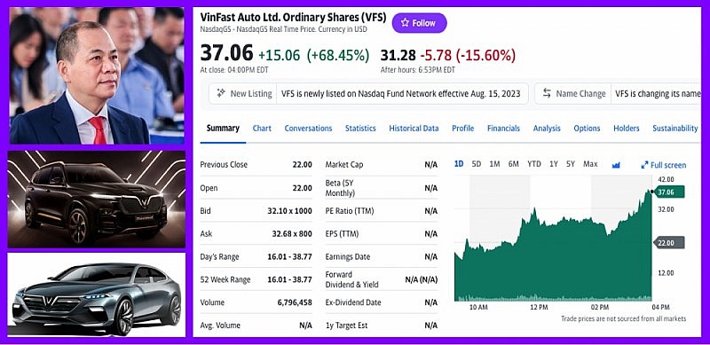 Đáng chú ý, bước sang phiên chiều, giá cổ phiếu VFS tăng phi mã và đóng cửa ở mức hơn 37 USD/cp. Với mức giá này, VinFast đã vượt mốc vốn hoá 85 tỷ USD, tự điền tên vào danh sách những tập đoàn xe điện có vốn hóa lớn nhất thế giới.