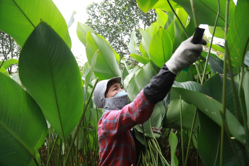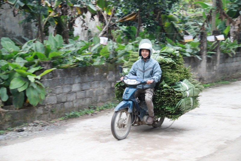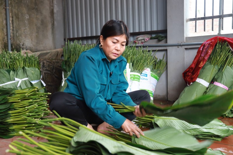 | Đến thôn Tràng Cát dịp này, dễ dàng bắt gặp cảnh tượng người dân hối hả ra vườn thu hoạch lá để kịp phục vụ nhu cầu gói bánh chưng tết Nguyên Đán 2024. |