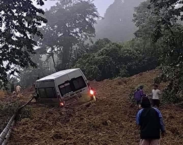 Từ đêm ngày 12/7 đến rạng sáng ngày 13/7/2024 trên địa bàn huyện tiếp tục có mưa lớn tại vị trí cũ tiếp tục sạt lở với khối lượng lớn, khối lượng đất đá sạt ước khoảng 2000m3 lấp 01 xe khách 16 chỗ.