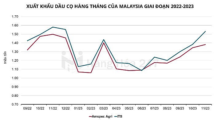 Trong khi đó, theo công ty giám định độc lập Amspec Agri, Malaysia đã xuất khẩu 1,38 triệu tấn trong tháng 11, so với mức 1,34 triệu tấn của tháng 10.