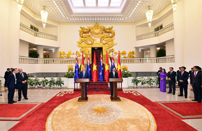 “New Zealand cam kết và hoàn toàn ủng hộ mối quan hệ hợp tác với Việt Nam. Chúng tôi coi Việt Nam là người bạn thân thiết, người bạn tốt của chúng tôi và tôi rất vinh dự được quay trở lại thăm Việt Nam lần này”, Thủ tướng John Key nói và bày tỏ sự hào hứng trước những cơ hội hợp tác đang mở ra cho doanh nghiệp hai nước và hai quốc gia.