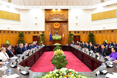 Ngay sau lễ đón được tổ chức trọng thể vào sáng ngày 15/11, Thủ tướng Nguyễn Tấn Dũng và Thủ tướng John Key đã tiến hành hội đàm.