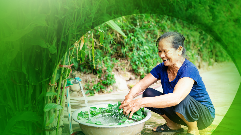 | Hình ảnh người dân vui vẻ sử dụng nguồn nước sạch |